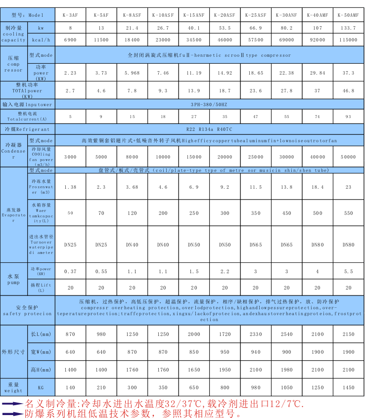 防爆冷凍機組技術參數