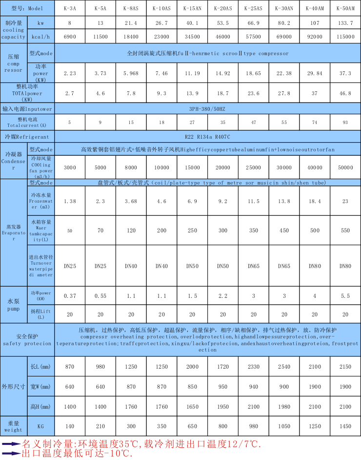 8.水冷及風冷式規格齊全(功率:3HP-300HP,制冷量從600W至34800W)專門設有適合各行業機械設備配套之機型,可按客戶要求特別制造。