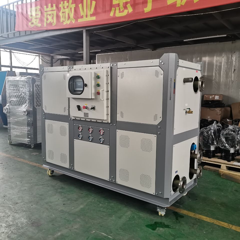 反應釜加熱制冷裝置控溫一體機組用于化工業如:精餾提純、橡膠粉碎、低溫研磨、化學合成。在化學領域的諸多工藝過程中,溫度在工藝工程、反應釜溫度控制方面起到了重要的作用。化學反應、合成、藥物基本組分的生產、聚合和結晶都是在有溫度控制的反應釜中進行的。