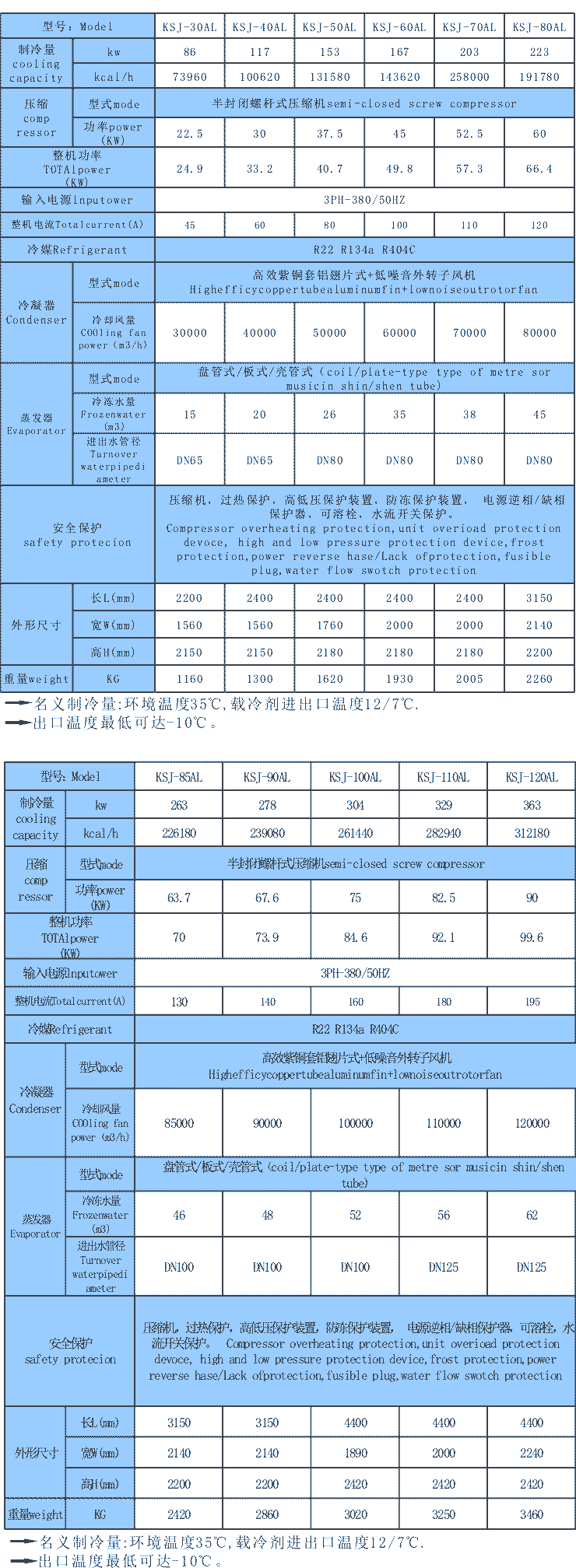 ⑧采用壓縮機過熱、過流保護,高低壓保護、防凍保護、流量開關、相序/缺相保護及排氣過熱保護等安全保護系統;