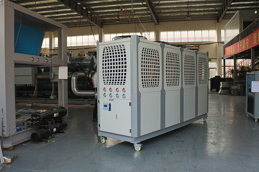 1、風(fēng)冷式成型機(jī)配套制冷降溫冷水設(shè)備,通過(guò)風(fēng)扇以空氣為冷凝方式的控溫設(shè)備,有箱式和螺桿式,單機(jī)輸出馬力從1HP~220HP;