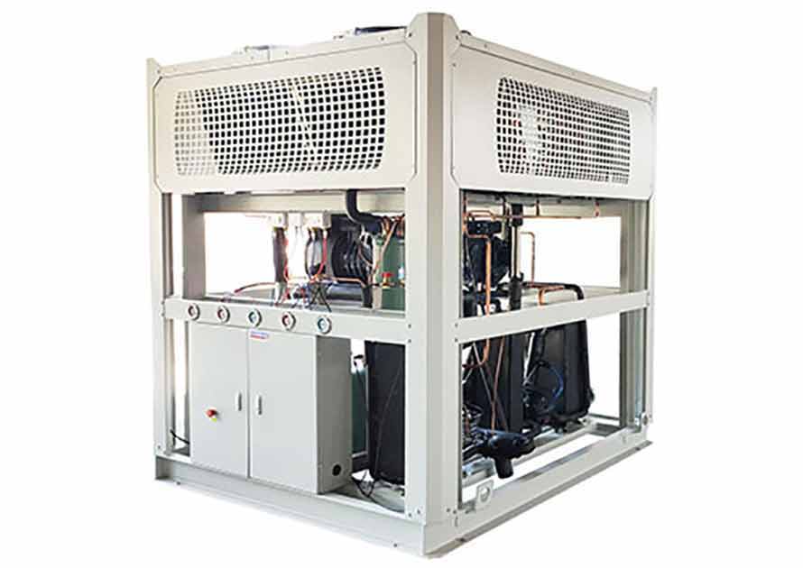 康士捷生產的化工行業用風冷式復疊冷凍機組控溫范圍可在-40度至-120度。