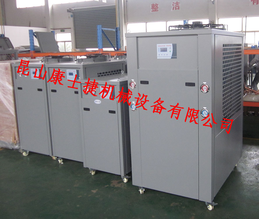 目前工廠使用較多的便是注塑機(jī),塑膠粒經(jīng)加熱溶化后注入模具中,凝結(jié)后,開模頂出成型塑膠工件,在連續(xù)生產(chǎn)過程中有需用對模具進(jìn)行冷卻,以縮短塑膠凝結(jié)時間,提高工件尺寸精度,成型質(zhì)量、表面質(zhì)量。而在早期,很多用戶選用冷卻水塔為其降溫,這種冷卻方式只適合在環(huán)境溫度較低的情況下達(dá)到降溫目的,一旦環(huán)境溫度升高,則無法保證產(chǎn)品精度。因此,就需要使用到冷水機(jī)
